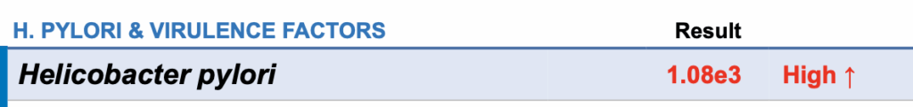 On her GI-MAP, we found H. pylori, a bacterial infection that directly suppresses stomach acid, along with a fungal overgrowth (candida). Both of these findings are incredibly important.